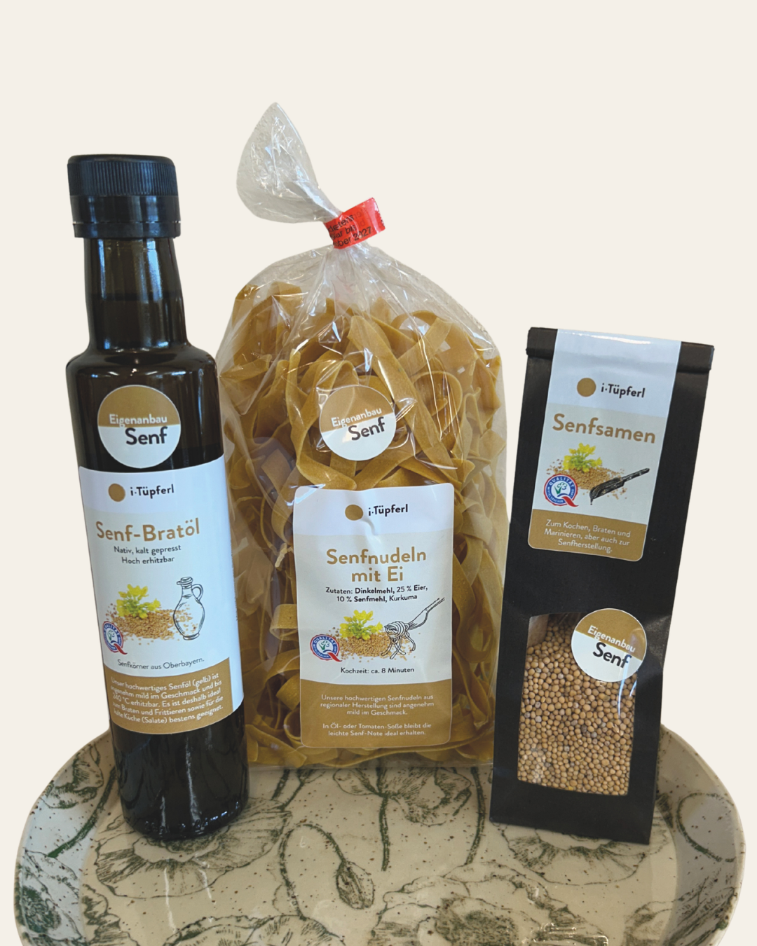 Senfprodukte auf Teller aus Kreativwerkstatt